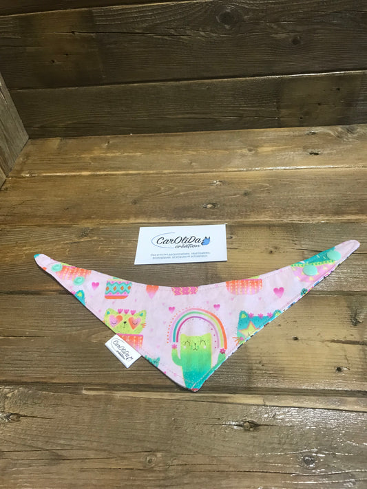 Bandana à snap réversible- chat rose et papillon/ XS-Petit
