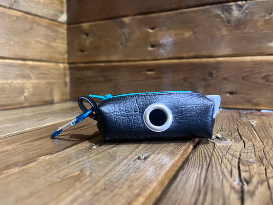 Il est muni d'un œillet assez grand pour faire passer les sacs pour une meilleur utilisation et d'une fermeture éclair pour y insérer facilement les sacs dans le distributeur.