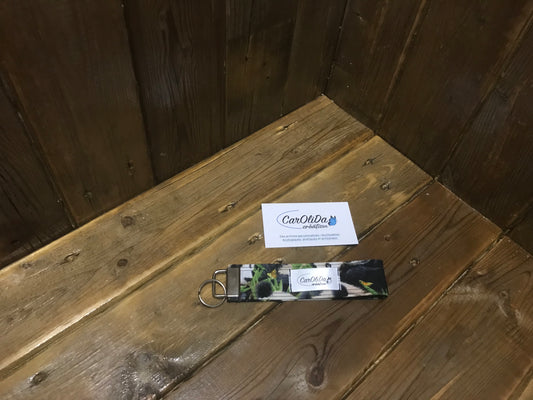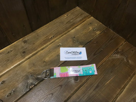 Porte clé fait en tissu, d'une longueur d'environ 5 1/2 pouces. Motifs variées.