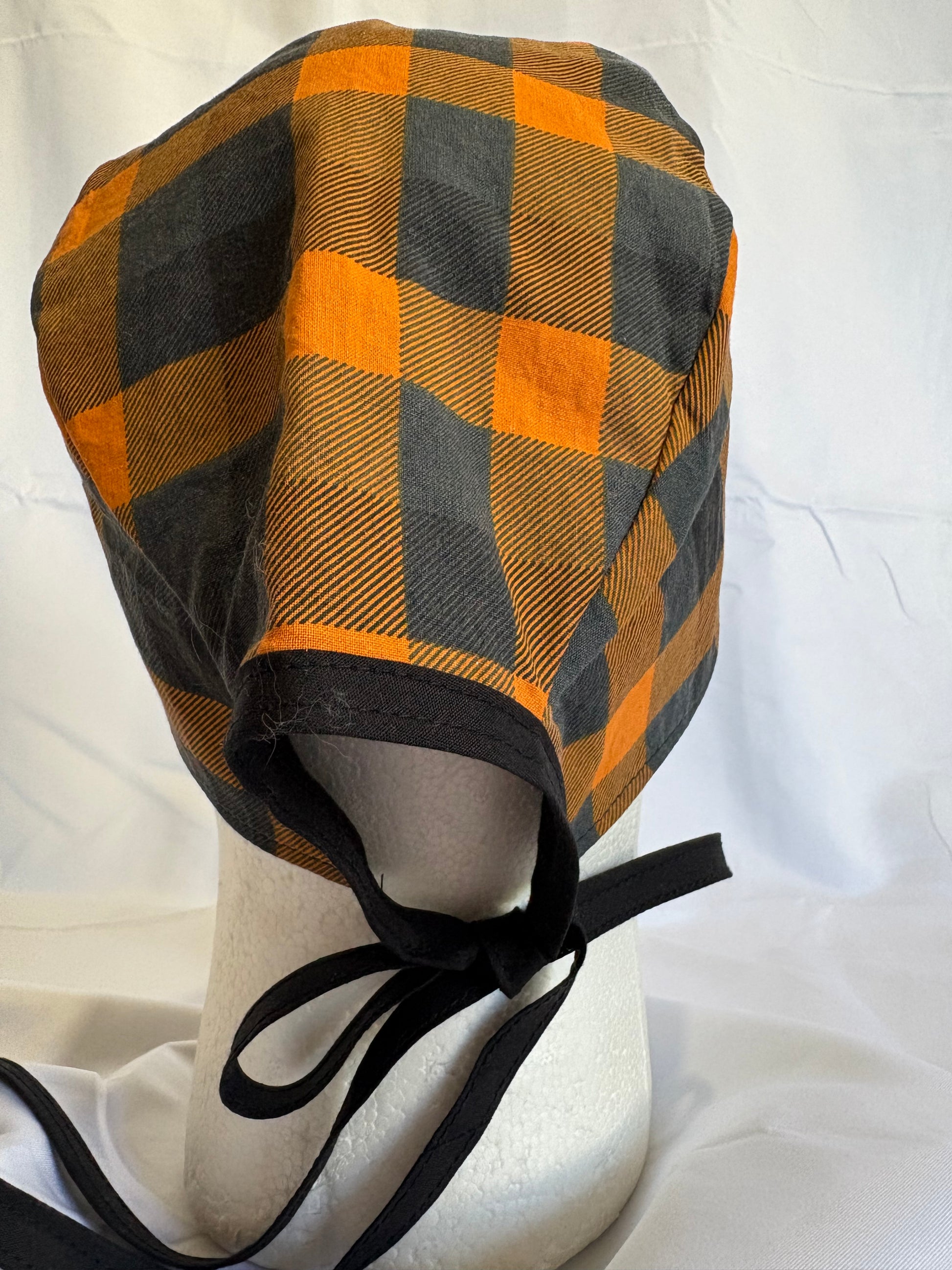 Chapeau chirurgie - Carreauté orange/noir - Cheveux court
