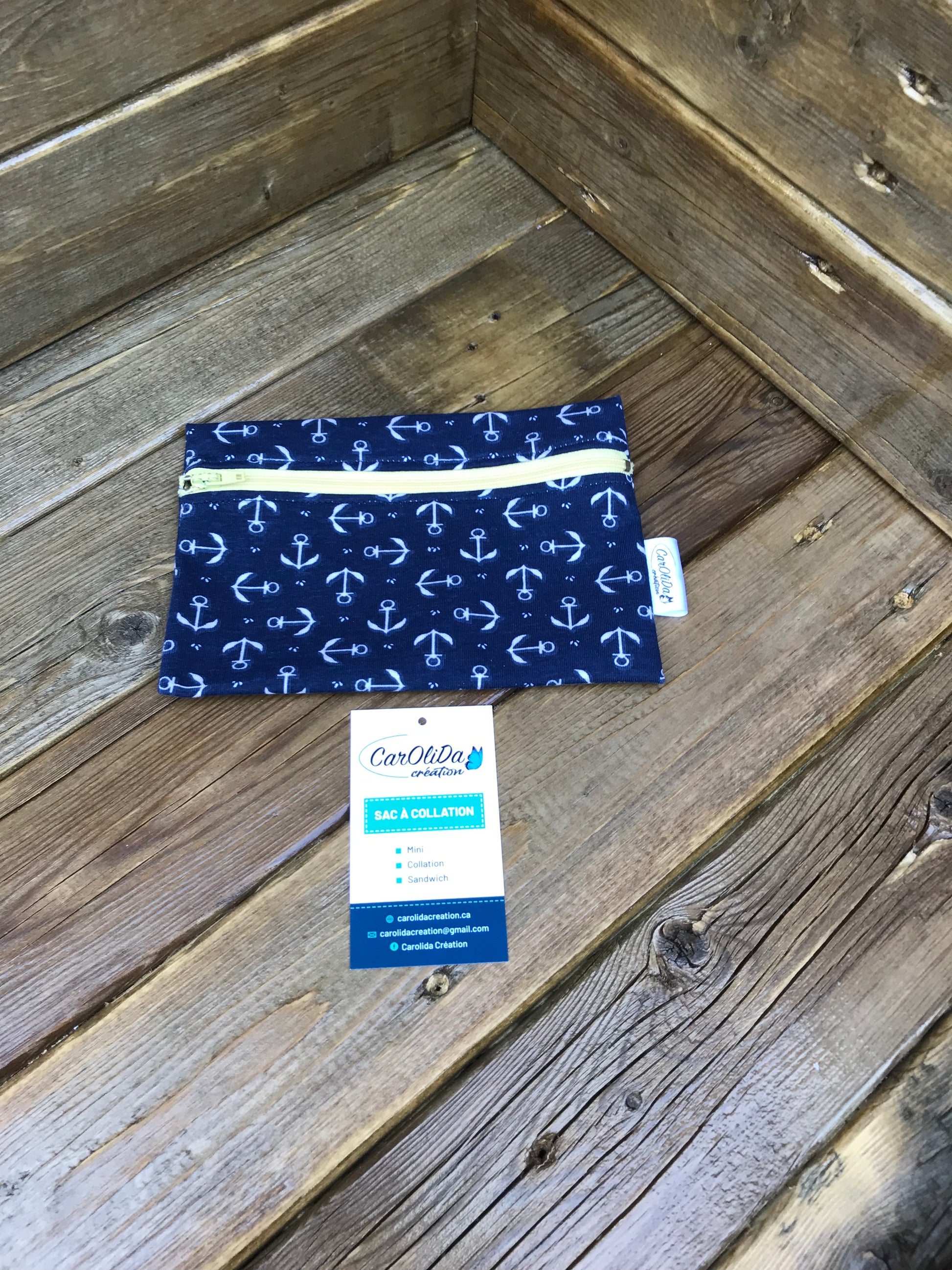Les sacs sont fait de Polyuréthane Laminé (PUL)/ coton avec une fermeture éclair.